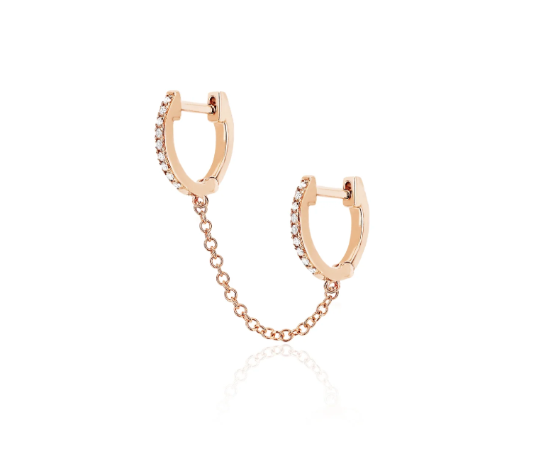 Two small huggies, one elegant chain. A pair of 9 mm mini huggies linked by a delicate chain—perfect for that elevated ear stack look without going overboard.