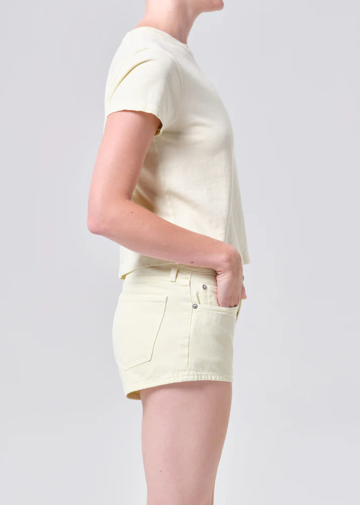 A fresh pop of color meets refined ease — this shrunken tee in vibrant Lemon Drop offers a lively twist on a wardrobe essential with a cropped, tailored silhouette that feels both effortless and elevated.