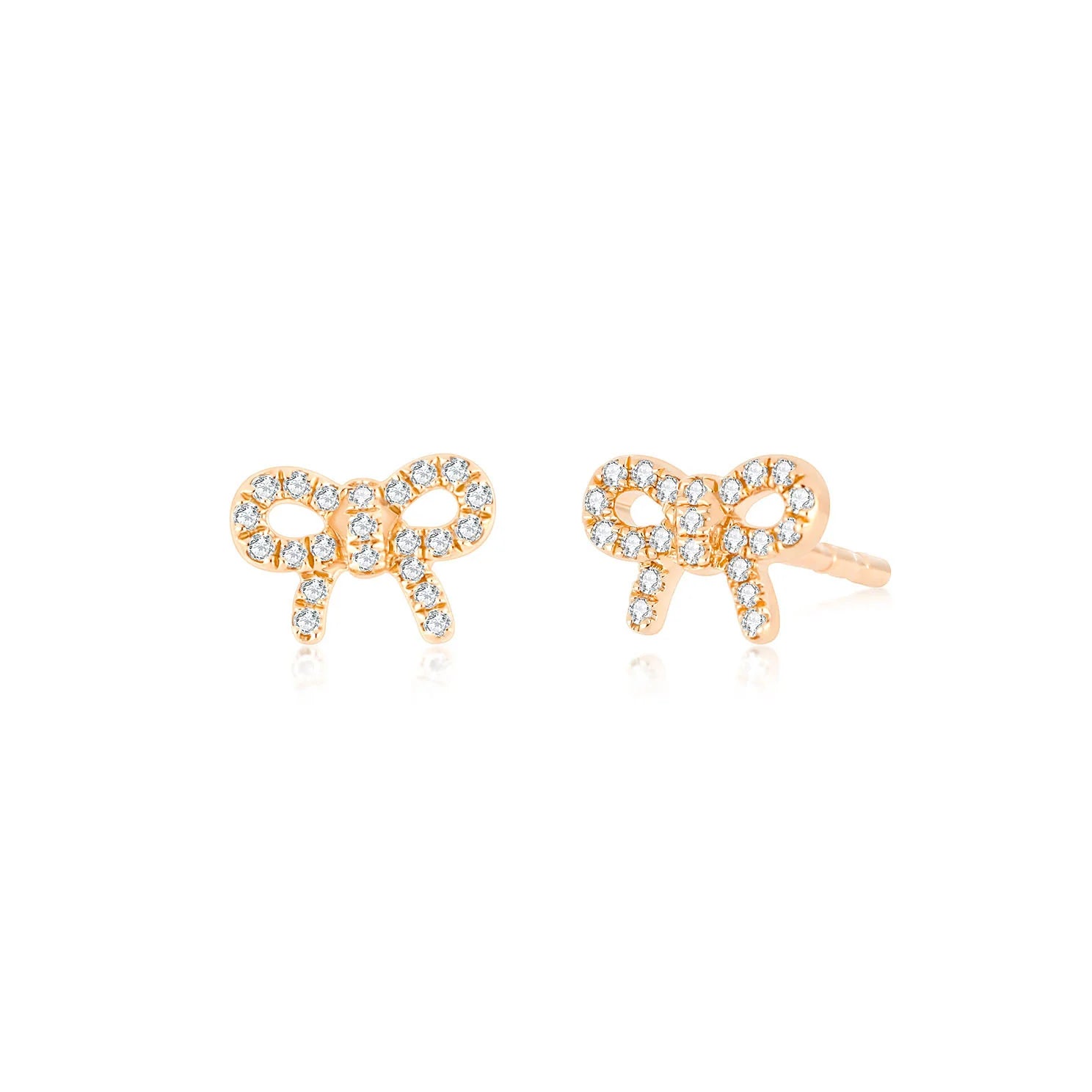 Delicate charm meets subtle sparkle. This mini bow stud features pavé diamonds set in 14k gold—sweet, refined, and perfect for an elegant ear stack.