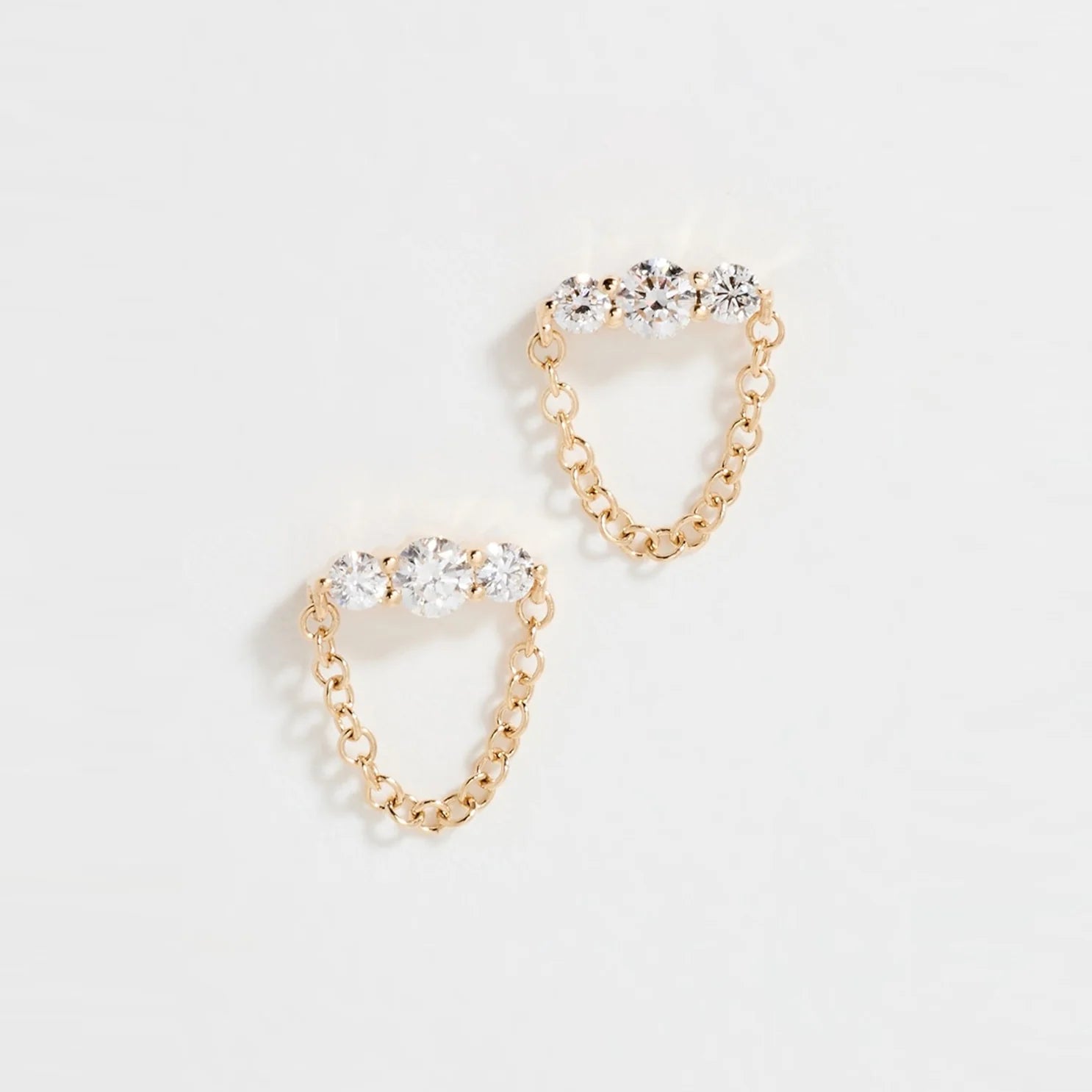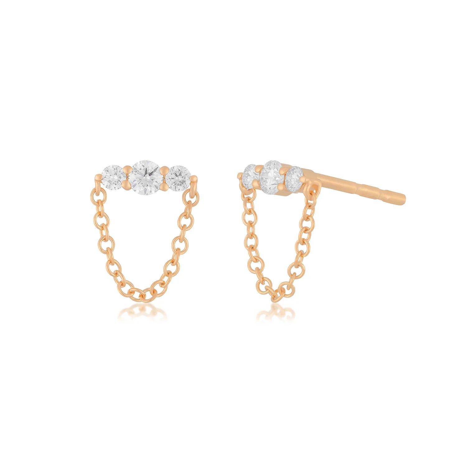 Luminous lines in motion. A vertical bar with graduating diamonds swings gently from a fixed stud—sophisticated shine in elegant form.