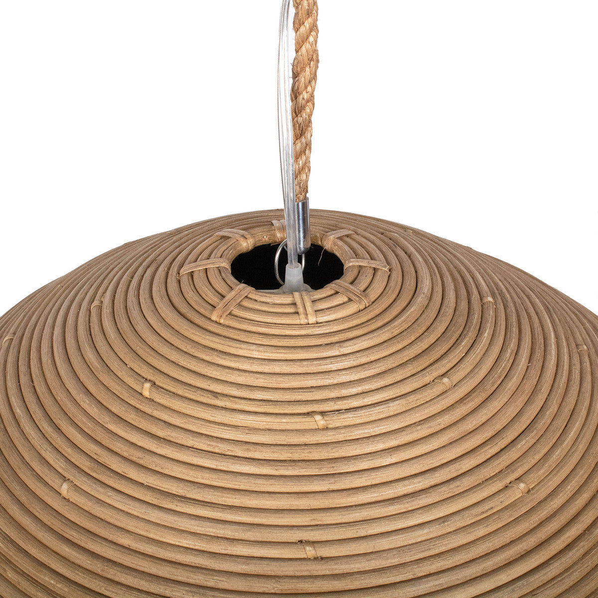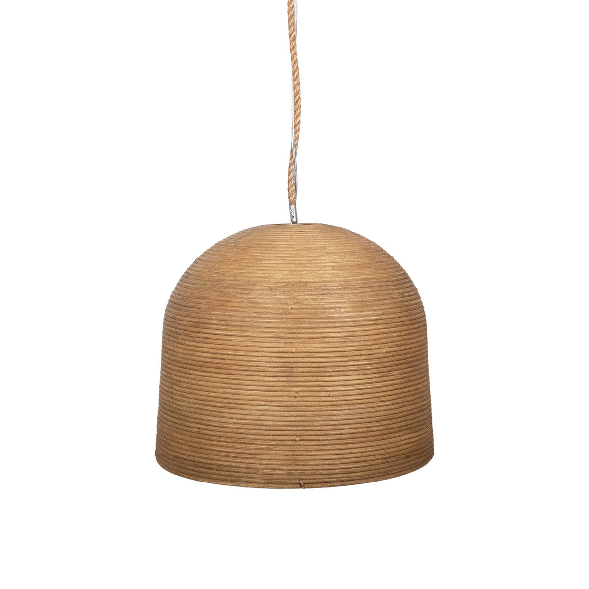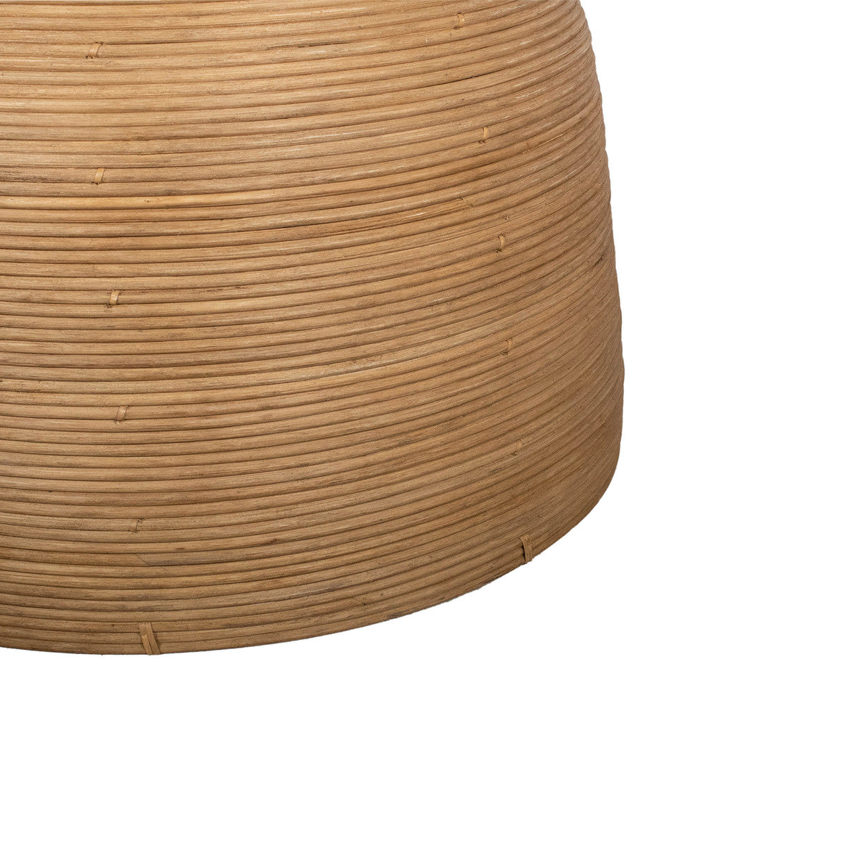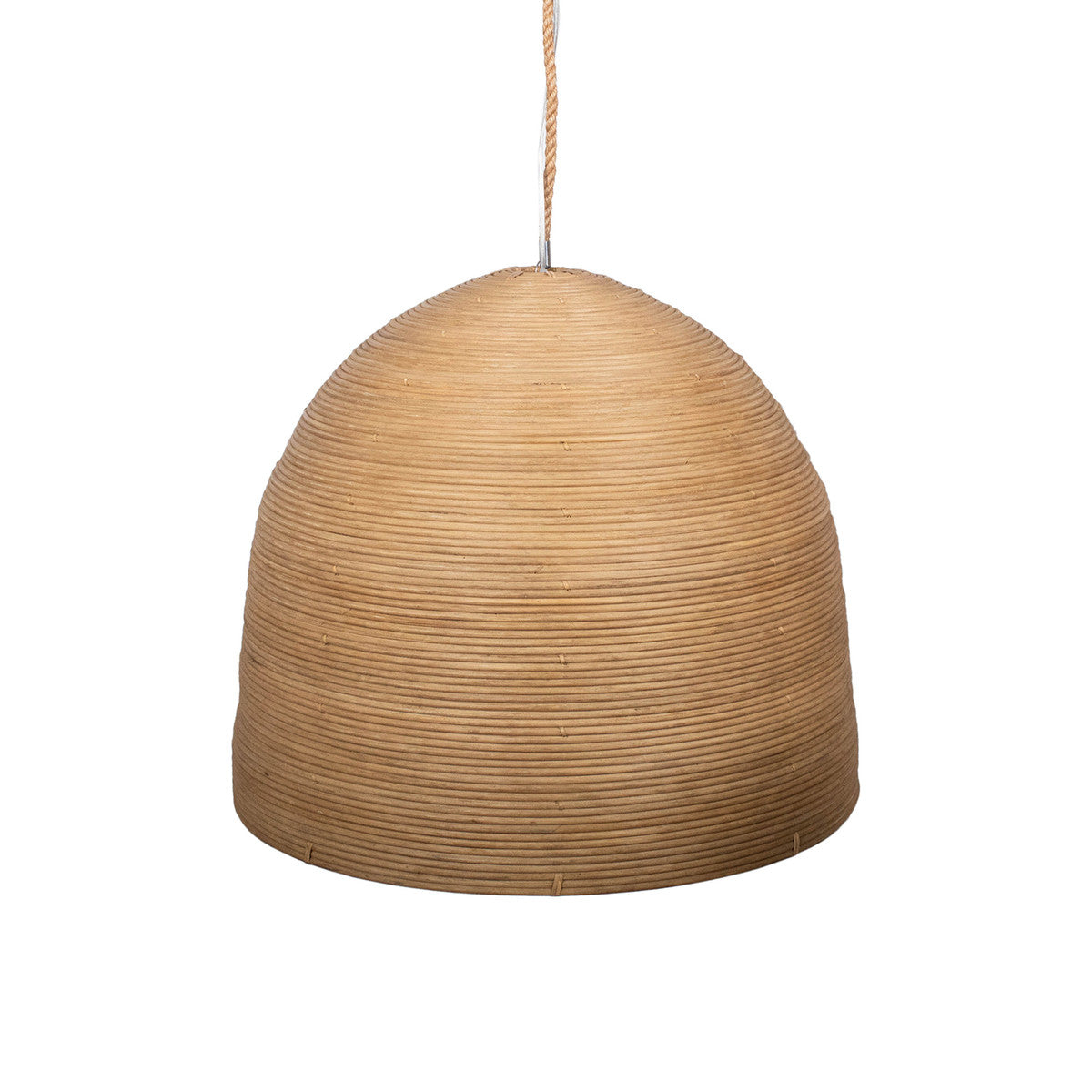 Organic structure meets architectural silhouette. Hand-wrapped in kiln-dried rattan with a bowl-shaped dome and iron framing, this pendant blends natural warmth and modern form. Its generous scale makes it a showpiece over dining tables, entryways, or vaulted ceilings.