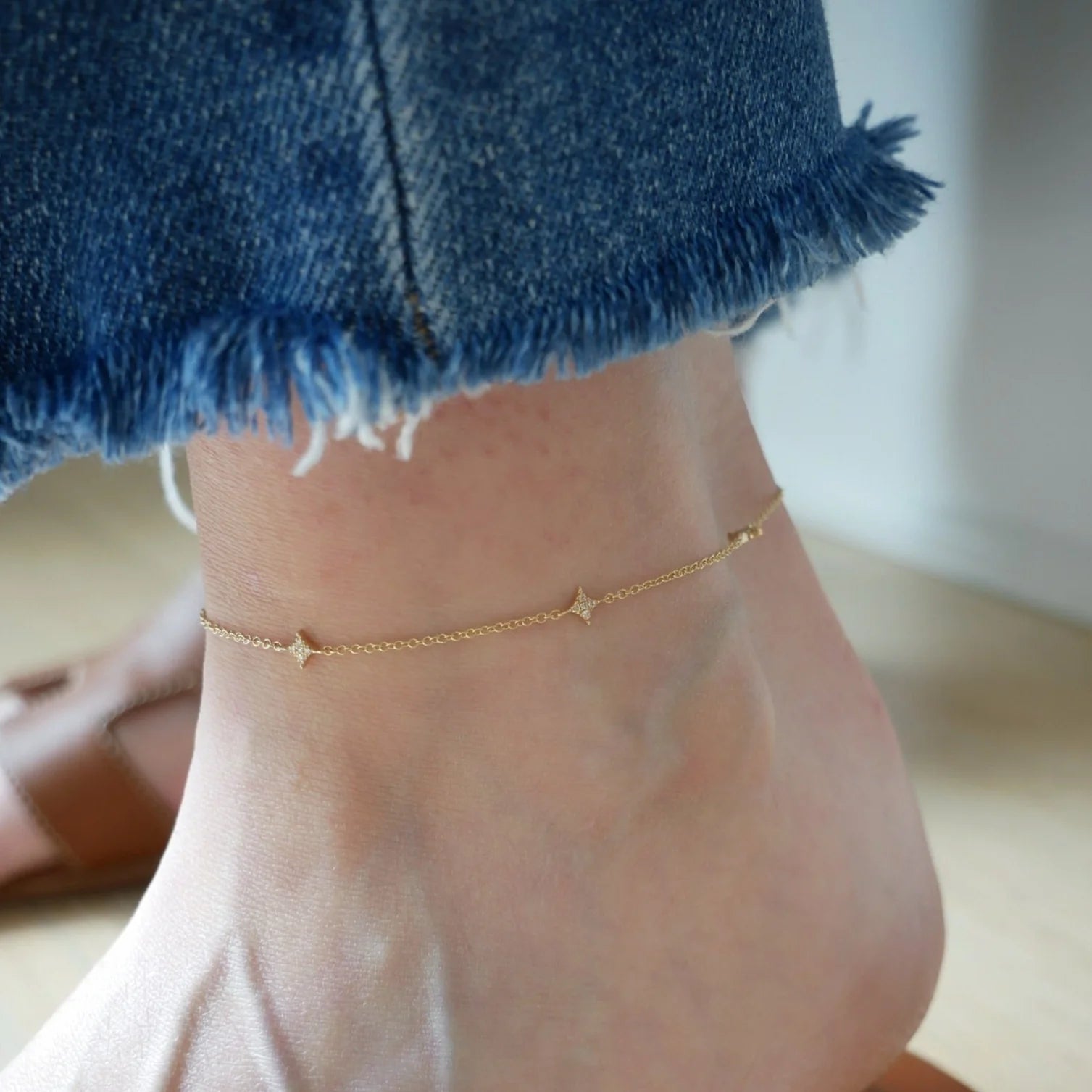 Tiny diamonds catch every light in this elegant anklet—designed to shine at every step.