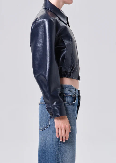 A versatile cropped jacket cut with relaxed ease in a rich navy denim. The Nahla features signature AGOLDE tailoring and a slightly boxy silhouette that hits at the waist — an easy layer that elevates both casual and refined looks.