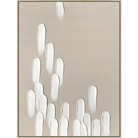 Soft abstraction, framed in calm. This hand-painted canvas on raw material blends painterly textures and neutral tones to bring tranquil drama to a wall.