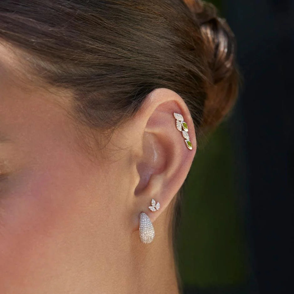 Pavé Diamond Leaf Stud Earring