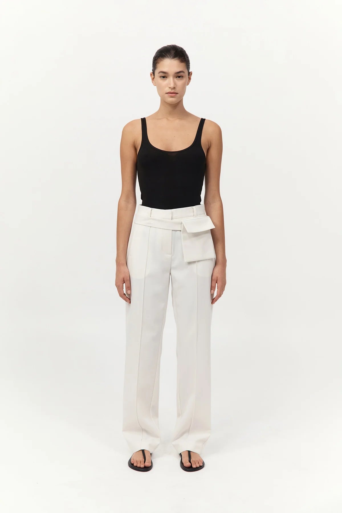 Style note: Tuck it into high-rise trousers and layer a tailored blazer over for refined polish, or wear it solo with biker shorts and sculptural sandals for effortless edge.