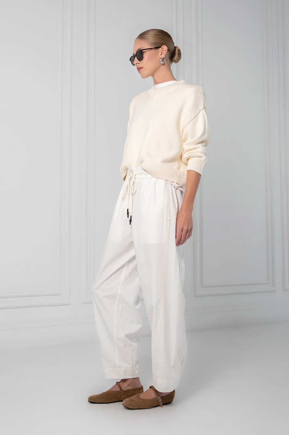 Soft structure meets refined ease — this ivory Sora Sweater offers elevated comfort through its cozy knit and relaxed silhouette, creating a refined wardrobe staple with quiet polish.