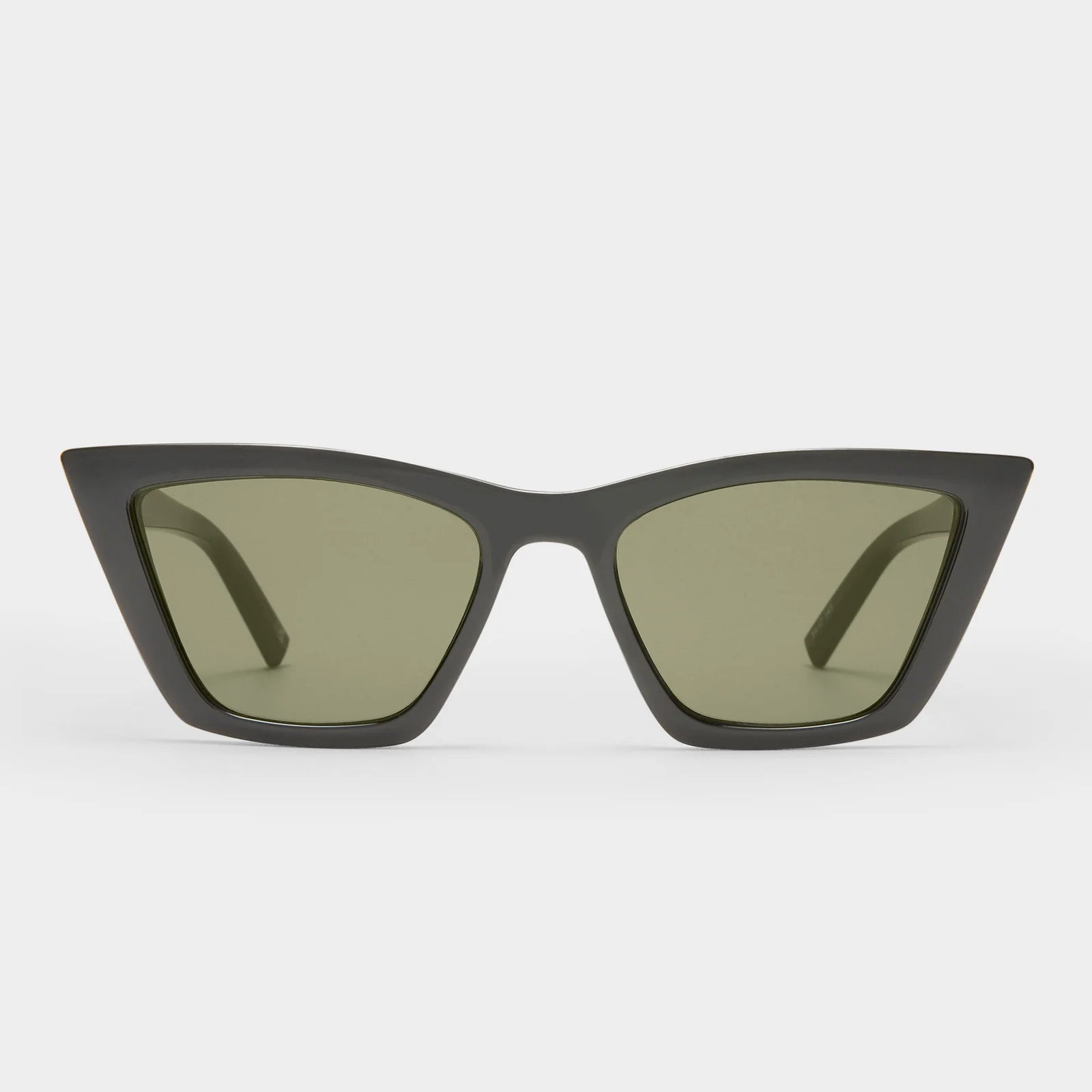 Classic cat-eye shape meets modern polish. Sleek black frame with chic pinstripe metal hardware and khaki mono lenses make this midsize pair a go-with-everything staple. Lightweight and resilient—designed to balance edge and ease.
